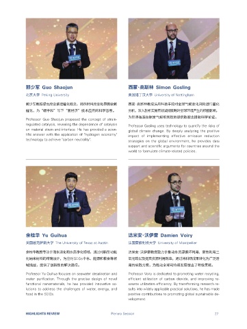 授西蒙·高斯林、美国德克萨斯⼤学奥斯汀分校教授 Simon Gosling from the University of Nottingham, Professor Yu Guihua 域挑战,提供了创新性的解决路径。 用的实践方案,为推动全球可持续发展做出了积极贡献。