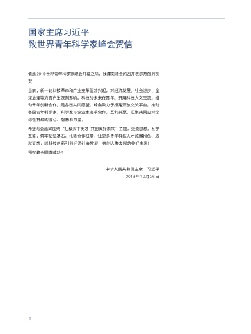 致世界青年科学家峰会贺信 FROM PRESIDENT XI JINPING