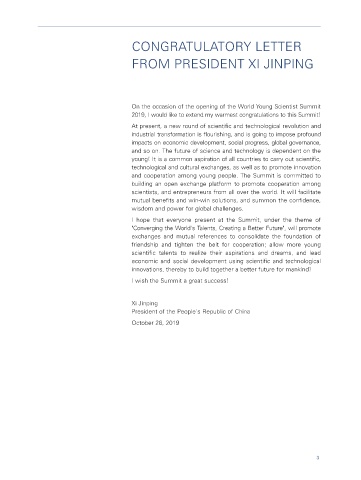 致世界青年科学家峰会贺信 FROM PRESIDENT XI JINPING