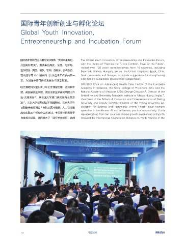 共创美好明天”,邀请来自丹麦、法国、匈牙利、 with the theme of "Practice the Future Contract, Pave for the Future", 论坛还举行了2024⼤学创业世界杯赛道冠军的颁 The Forum also held the awarding ceremony of the 2024 University