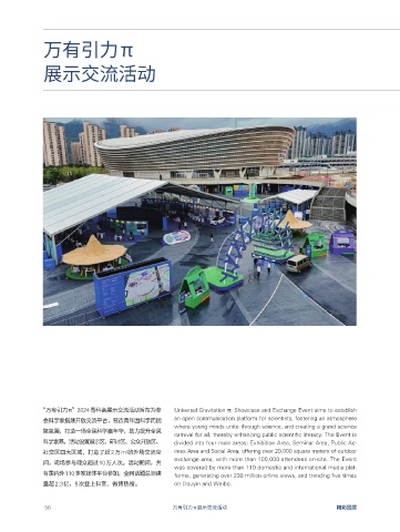 科学素养。活动设置展示区、研讨区、公众开放区、 divided into four main areas: Exhibition Area, Seminar Area, Public Ac- holding the WYSS 2024 Oral Presentation Session Leading the Future: Cutting-Edge Technology “思纳四海,术论今来”-论文墙报展